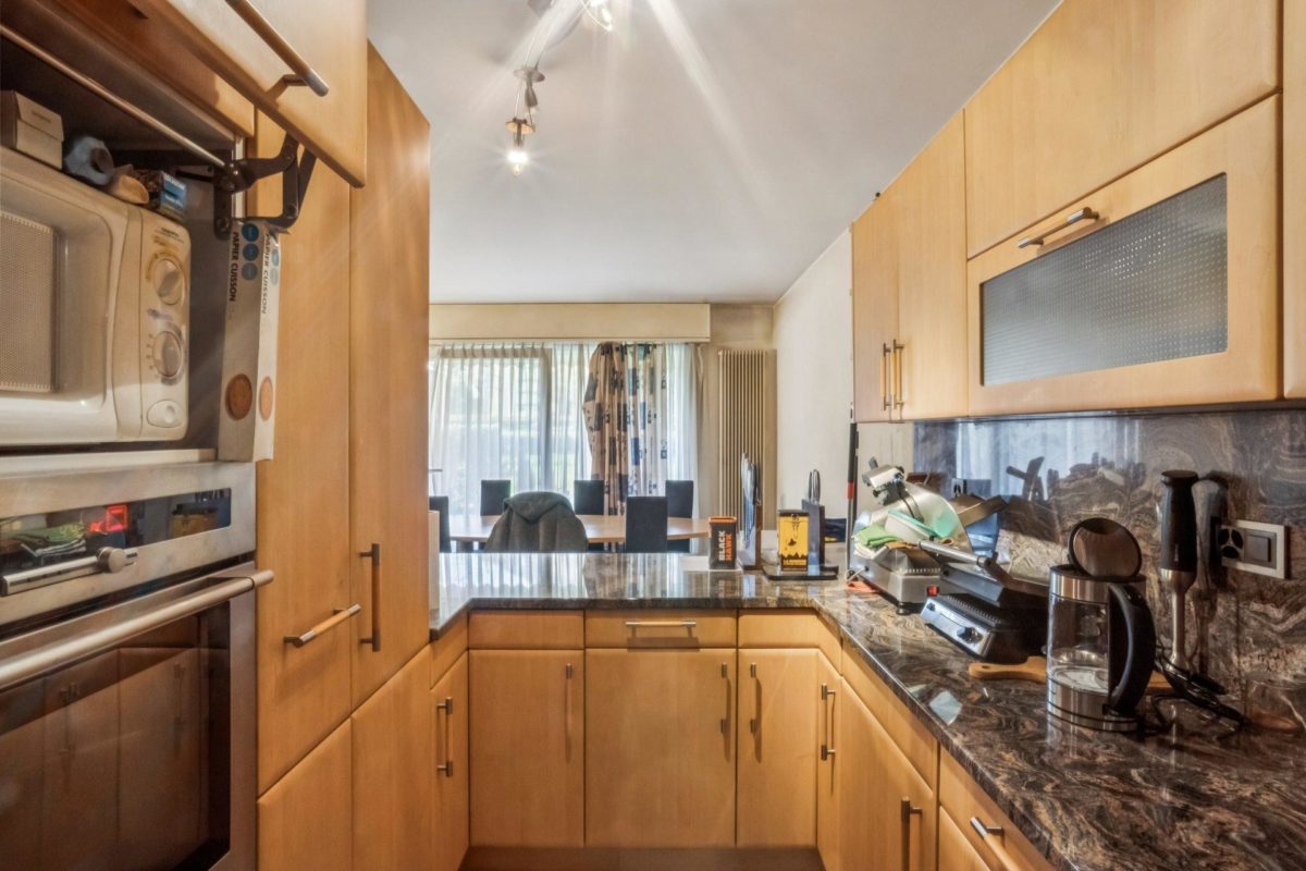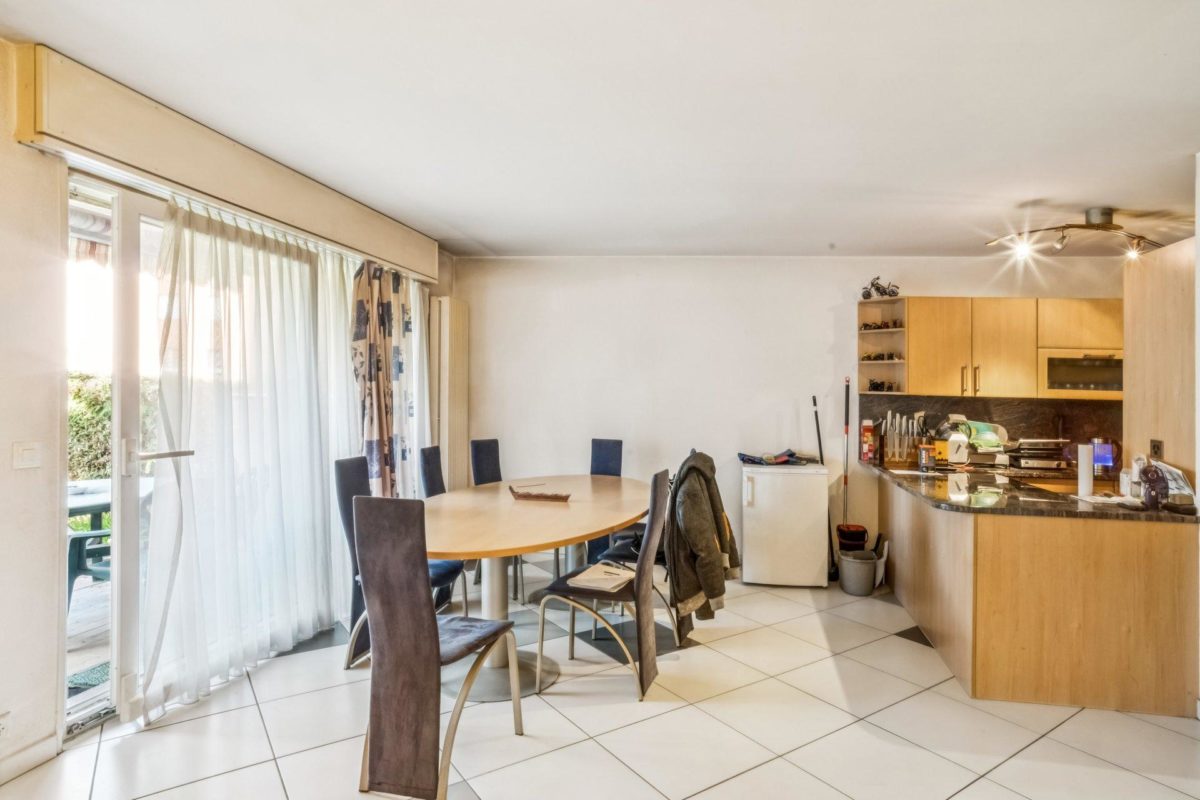 La cuisine semi-ouverte sur le salon a été rénovée avec de beaux matériaux (plan de travail en marbre). Le salon spacieux et lumineux s'ouvre sur la grande terrasse et le grand jardin. Le jardin à une servitude exclusive pour l'appartement.