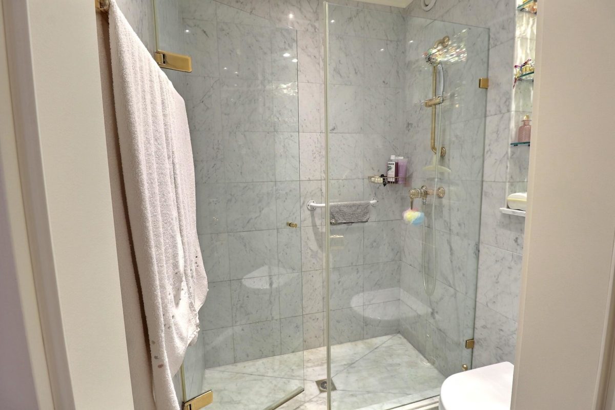 Ce bien rare propose trois chambres dont une magnifique suite avec dressing généreux ainsi que deux salles de bains en marbre, modernes l’une avec douche l’autre avec baignoire pour un confort optimal.
