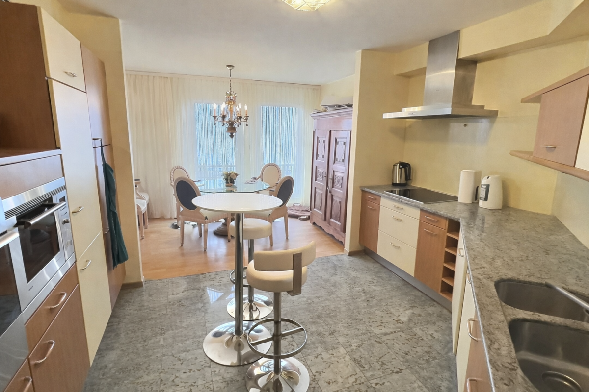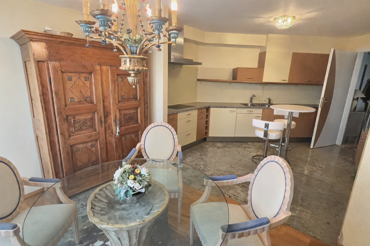 L’appartement se compose d’une cuisine ouverte, fonctionnelle et conviviale, donnant sur la salle à manger et le salon, créant un espace de vie lumineux et harmonieux. Le salon bénéficie d’un accès direct à un balcon, offrant une superbe vue dégagée sur le Lac Léman, idéale pour profiter de moments de détente en toute saison.